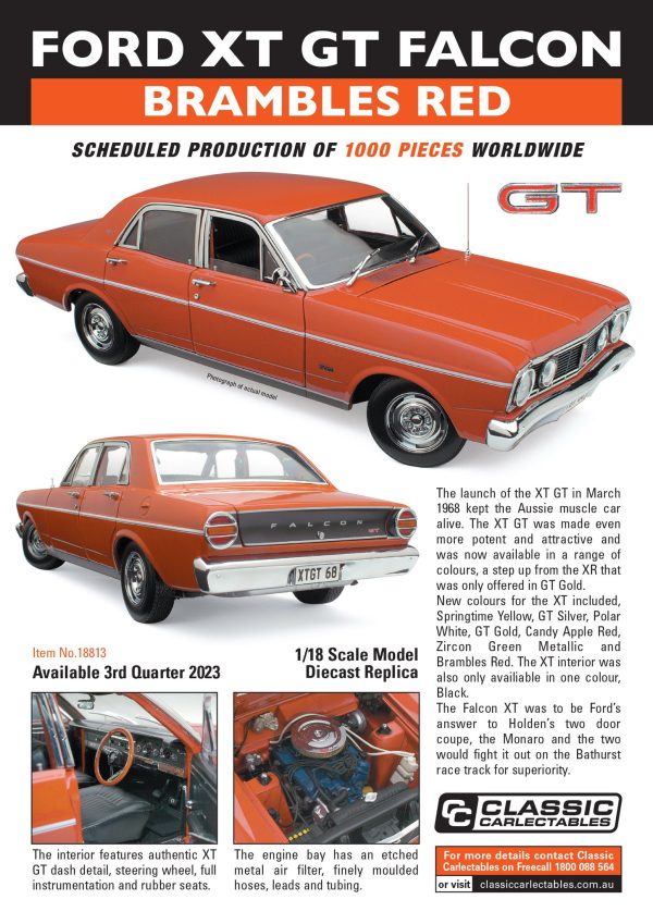 1:18 Scale. 1968 Ford XT GT Falcon in Brambles Red.