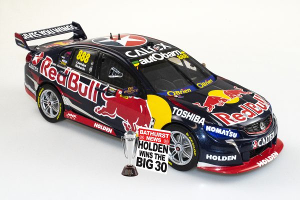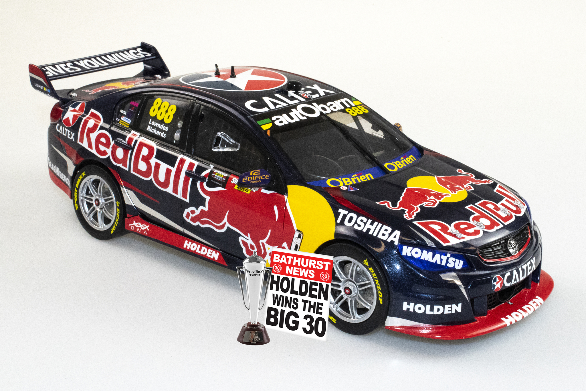 1:18 Scale. Craig Lowndes/ Steven Richards. Holden VF Commodore V8 Red Bull Racing Australia, #888 2015 Bathurst 1000 Winner. Including Winners Trophy and Poster