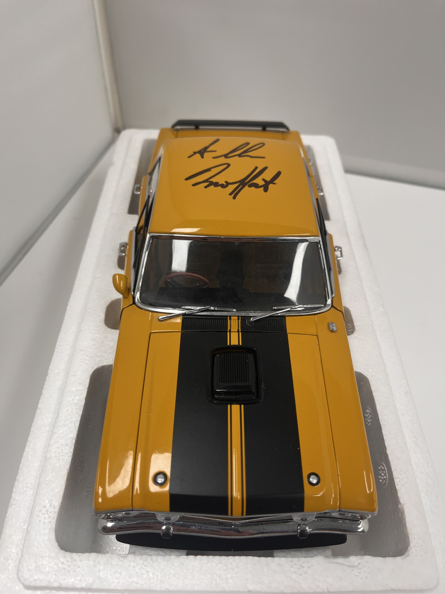 1:18 Scale. Ford XY Falcon in Yellow Ochre, signed by Allan Moffat