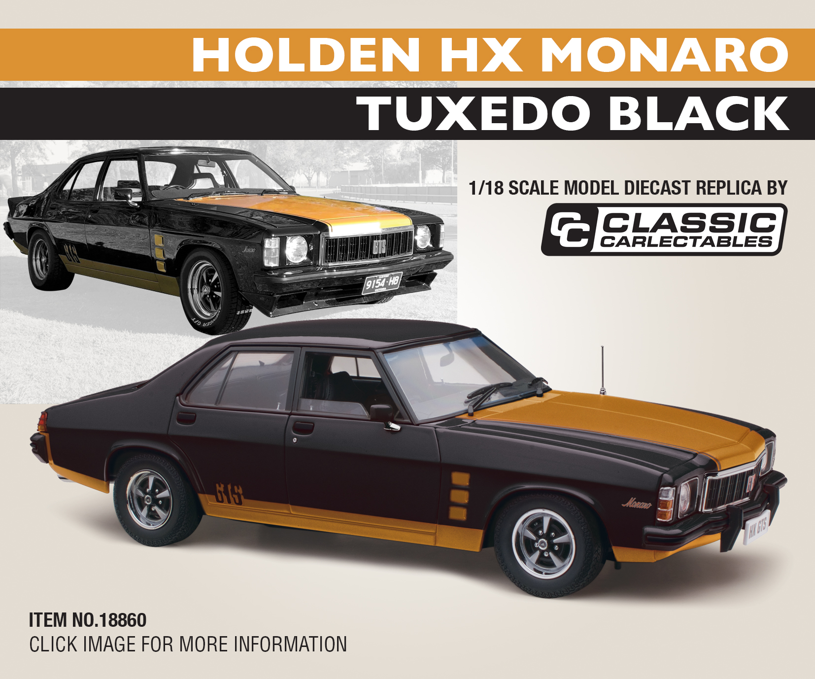 Available: at a future date.1:18 Scale. Holden HX Monaro GTS Sedan in Tuxedo Black