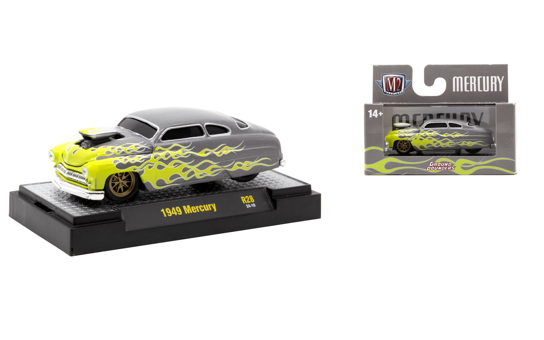 1:64 Scale. 1949 Mercury, Grey with yellow flames. M2 Machines