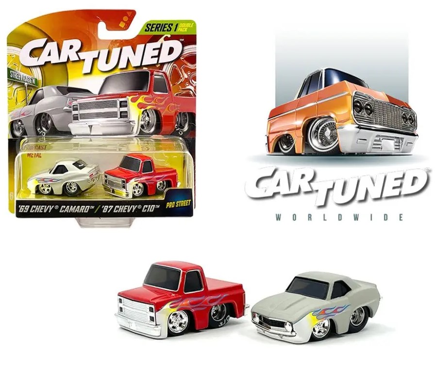 A new diecast collectible has arrived. Introducing CarTuned 2 Pack Series 1 – Street Race’n, inspired by the iconic 1969 Chevy Camaro and the 1987 Chevy C10; showcasing all genres of Car culture.