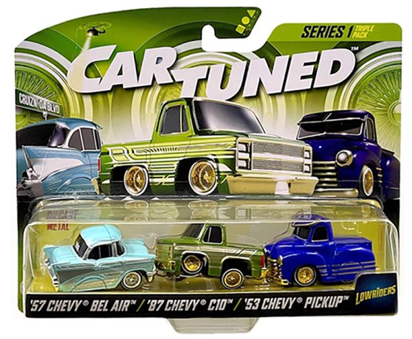 1:64 Scale. Chevrolet Triple Pack,1987 Chevy C10, 1957 Chevy Bel Air, and 1969 Chevy K5 Blazer. Premiere Series 2. “Stylin & Profilin” Lowriders” CarTuned