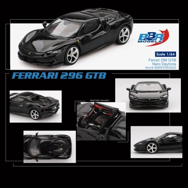 1:64 Scale. Ferrari 296 GTB Nero Daytona