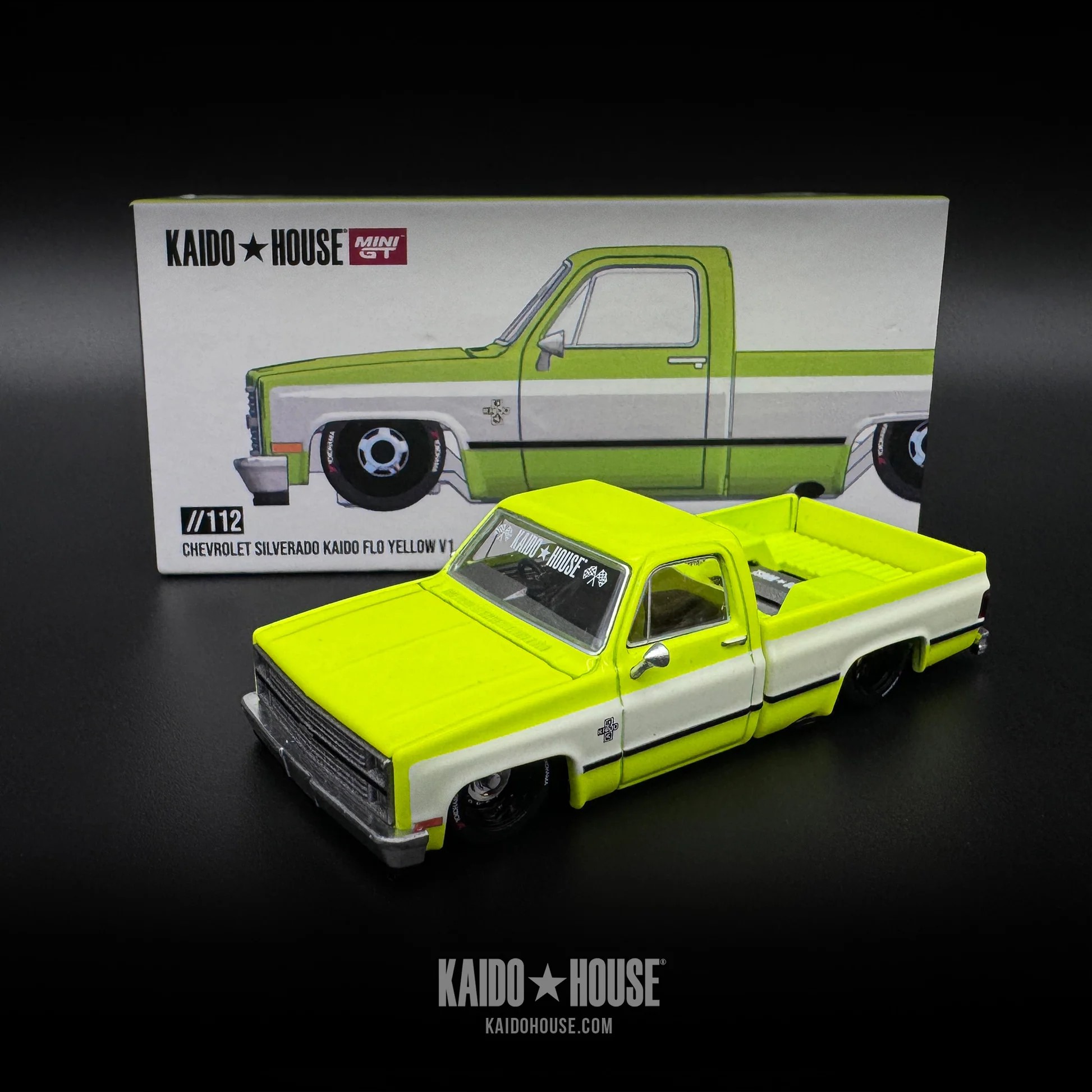 1:64 Scale. Kaido GT Chevrolet Silverado Kaido Flo Yellow V1. KAIDO HOUSE