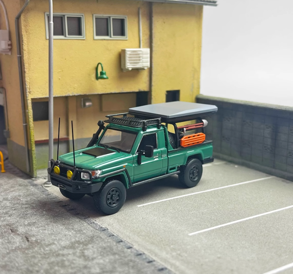 1:64 Scale. Toyota LandCruiser LC79 Alloy Pickup Truck in Green
