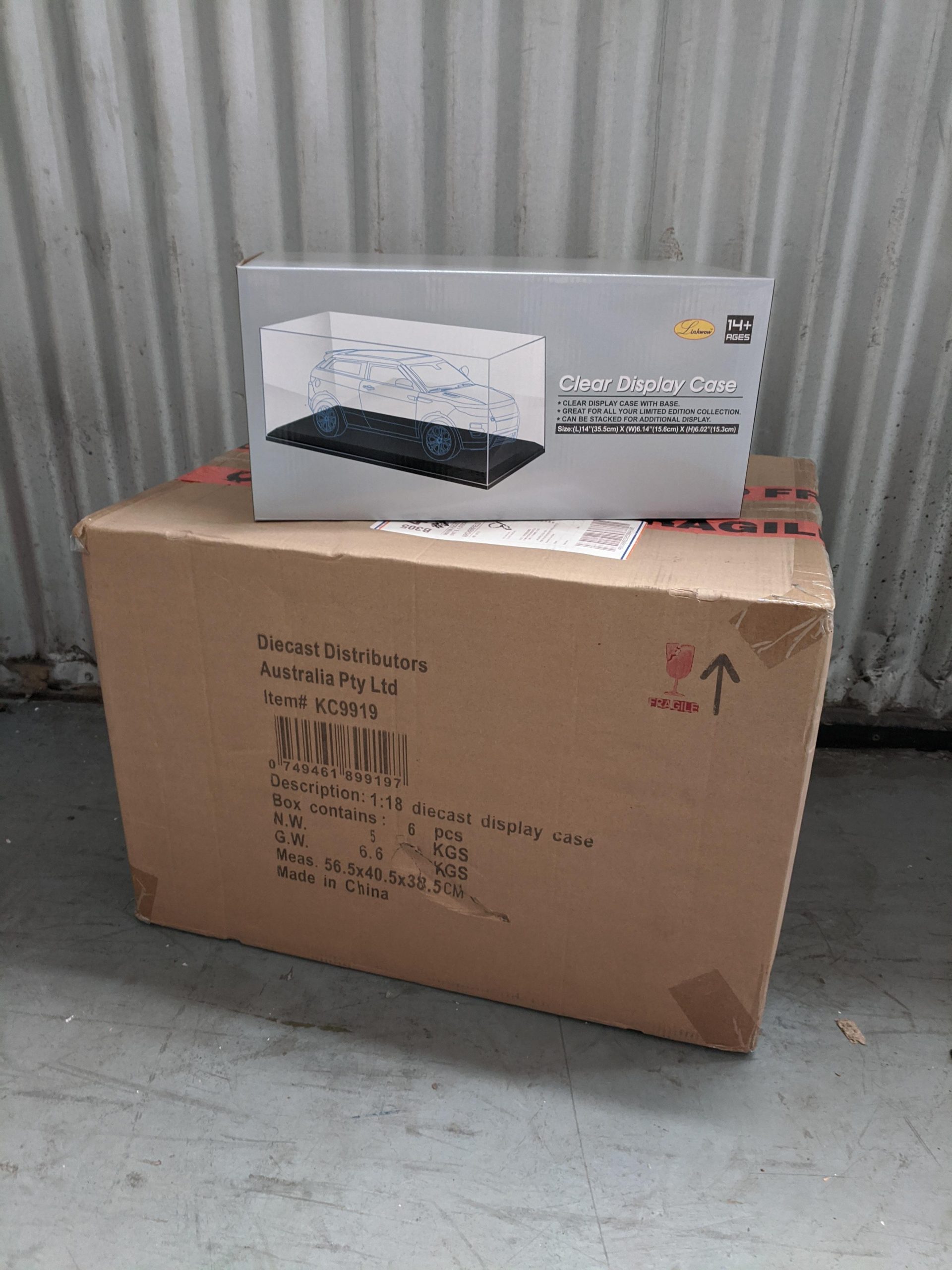 6 x 1:18 scale display cases. Usually $45.00 ea