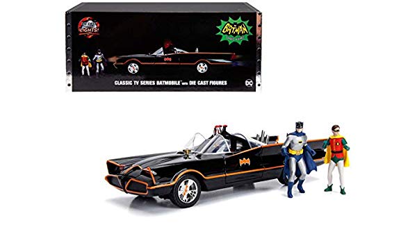 Featuring a die-cast metal body, rubber tires, batman and robin figures, as well as light-up features, this Batman 1966 TV Series Batmobile is a must for any Batman or movie car collector.