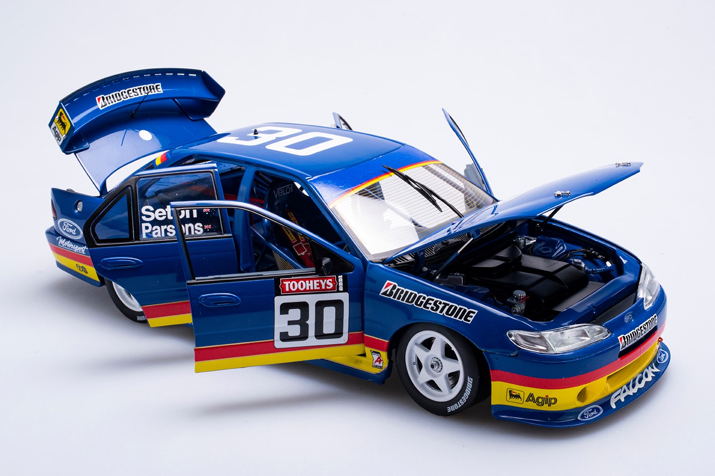 Glenn Seton / Parsons Ford EF Falcon – 1995 Bathurst 1000 – #30 . Produced by Biante with opening bonnet, doors and boot lid.