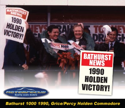 Newspaper covers were a real feature on many Bathurst podiums. Designed to rub more salt into the wounds of the opposition, the covers were proudly held up by the winning drivers. We have had these historic newspaper covers produced in 1:18 scale so you add them to your model display. This great newspaper cover is for use with the Bathurst 1000 1990, Grice/Percy Holden Commodore.
